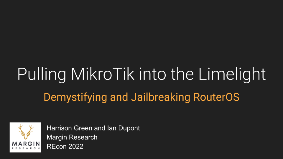 Our intent for this post is to document these concepts and refresh the publicly available knowledge of MikroTik and RouterOS, with hopes of lowering the barrier to entry for other interested researchers and tinkerers. This is especially important because MikroTik gravitates towards obscurity, cluching tight to their hand-rolled source code and often leaving customer questions about implementation details unanswered.