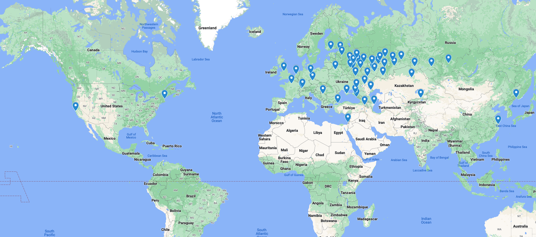 If Yandex identifies divisions and splits into an international version and a Russian version, it will also have to contend with staffing questions—that is, ensuring it has the requisite talent to keep developing and managing its products and services both in and outside of Russia. Before analyzing GitHub data that indicates where Yandex’s open-source software contributors are based, I gathered and visualized data on Yandex’s current office locations and publicly listed job vacancies.