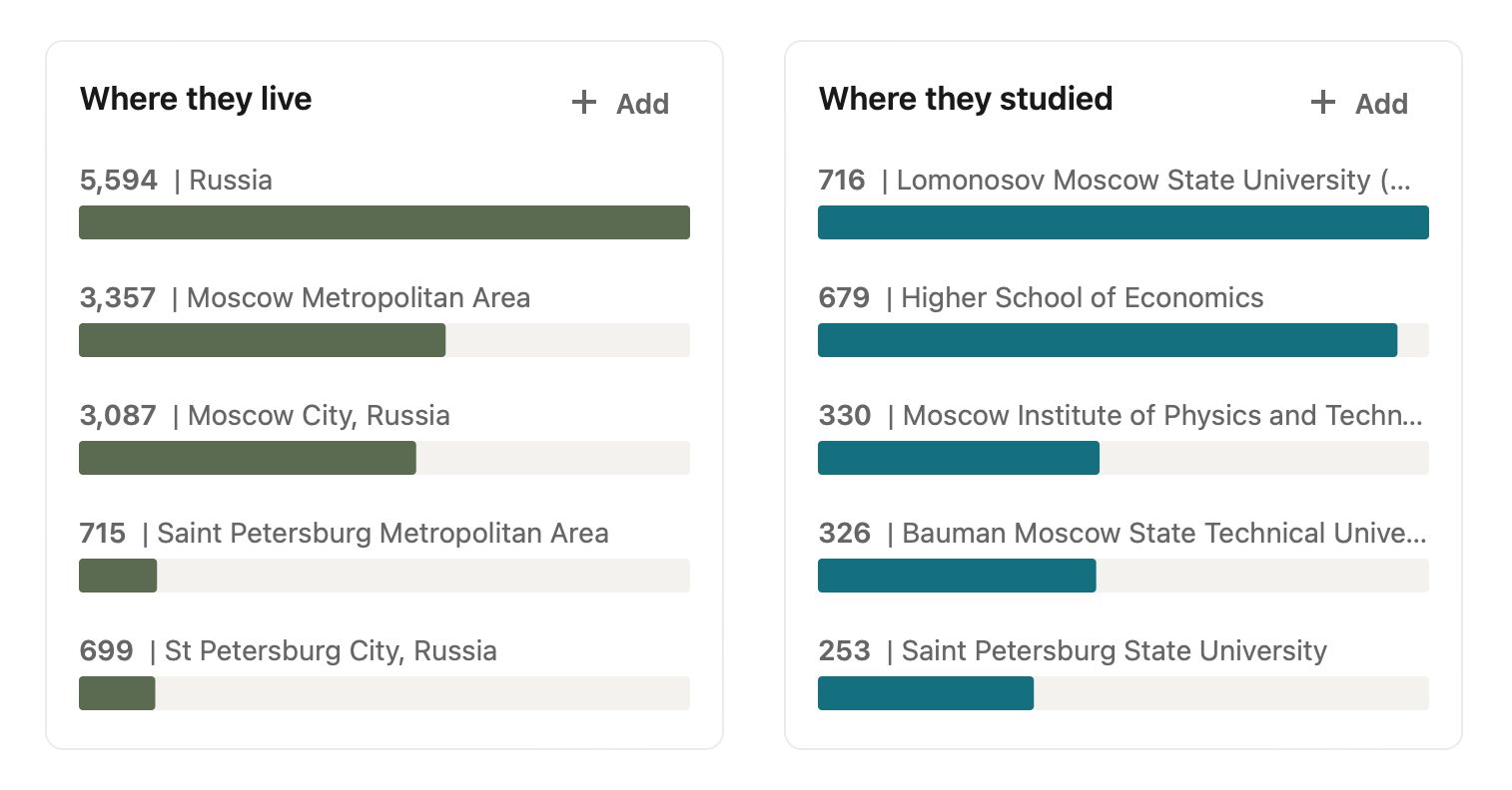 Based on this data, Yandex may face several challenges on the talent side of this planned business split. Both the contributions to its 100+ open-source code bases on GitHub and the job postings on its English- and Russian-language websites suggest that many of its software developers, and its hirees, are located in Russia. The following screenshot, taken from Yandex’s LinkedIn page in March 2023, further indicates that Yandex has its talent heavily concentrated in Russian borders.